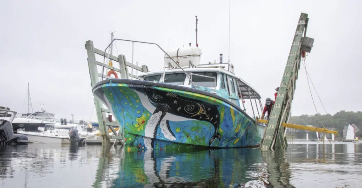 In a partnership with Mi’kmaw artist Alan Syliboy, the boat is covered in colourful designs of ocean animals.